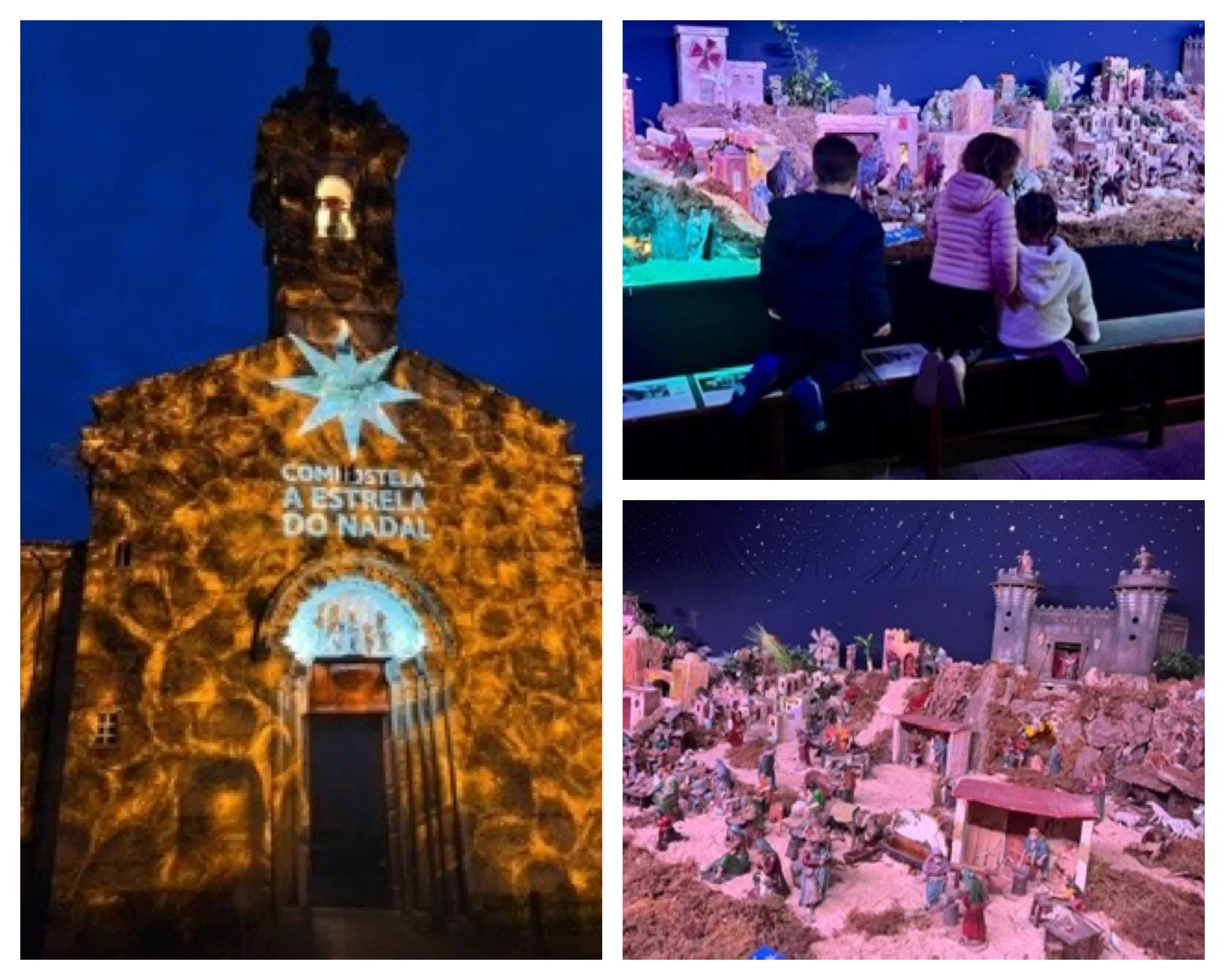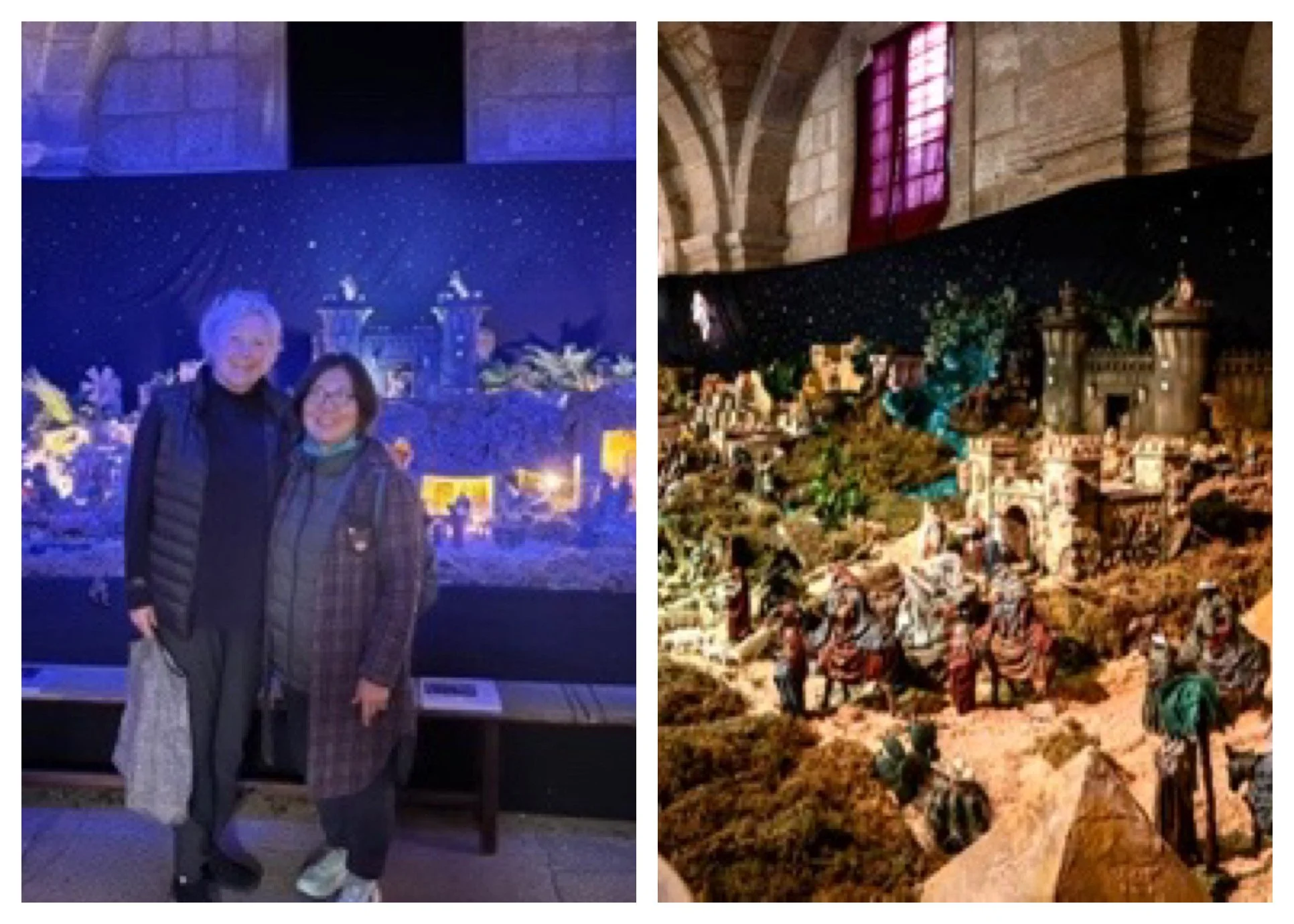 Belénes are a beloved Spanish Christmas tradition. Churches, government buildings, private companies, and stores set up displays with hundreds of figures, buildings, landscaping and mechanical wonders. Day and night, people go from place to place visiting these works of devotion, often standing in long lines to view them. Like the interiors of so many churches on the camino, they are a visual expression of the Biblical story from the exodus to the resurrection.