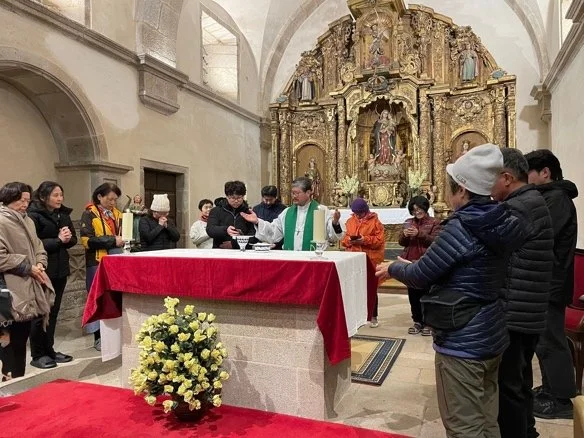 There are not many pilgrims’ groups walking the Camino in the winter but Father Joaquim Hyeon Ho Kim from the Anglican Church of Korea and some of his parishioners walked the Camino in February. They arrived in Madrid where they were welcomed by Bishop Carlos and given a pilgrim blessing. They then walked from Sarria to Santiago where they were met in Santiago by Mother Adeli from Vigo, and fellow countryman Daniela (Munhee Kim),a Presbyterian missionary with WEC and one of our faithful volunteers.