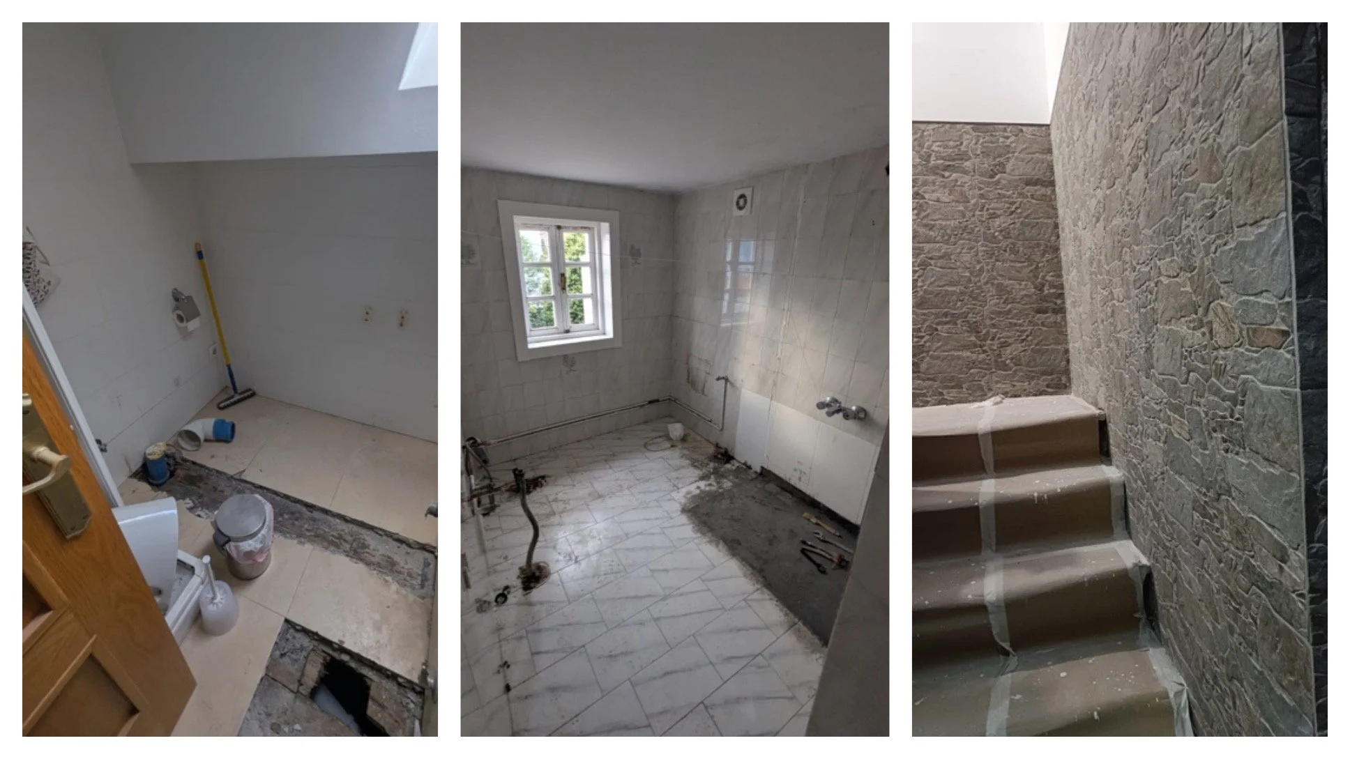 The Casa has been closed since mid-December, and the long awaited renovations are well underway. Starting from the top down, the builders have been hard at work adding bathrooms to each of the rooms. Creative use of the now unneeded shared bathrooms has resulted in two new bedrooms, an office and a supply room. Those of you who stayed in the two rooms with the smallest bathrooms in Santiago if not in Spain, will appreciate the new larger bathrooms. On the stairway, the chipped plaster has been removed, exposing beautiful stonework underneath