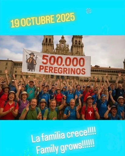 On October 19th the Cathedral's pilgrimage office in Santiago de Compostela broke a new record. A Colombian man who had walked the Portuguese Camino with his son to honor his late wife became the 500,000th pilgrim to receive a Compostela this year. As this photo, widely shared on Facebook, says, The family grows.