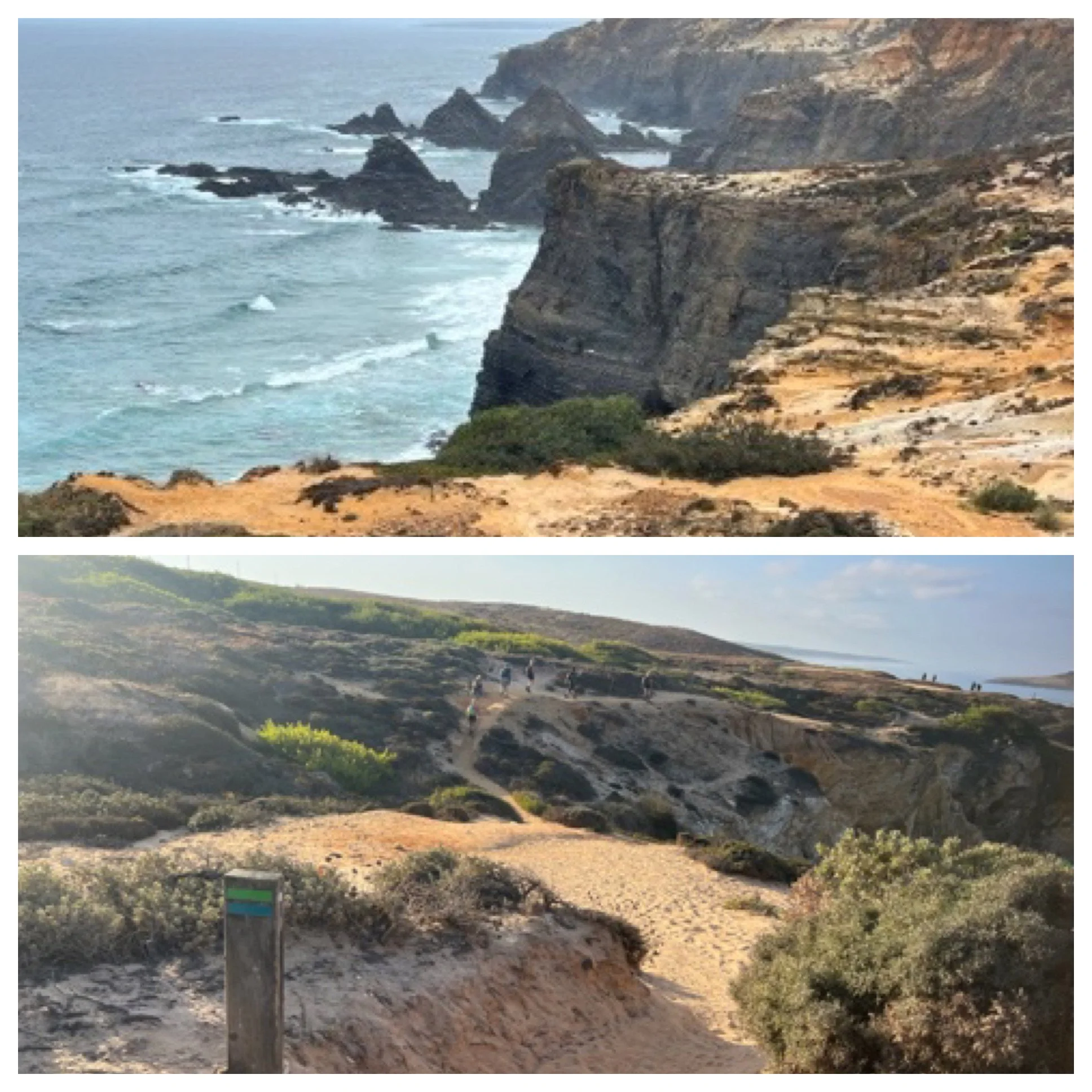 After our meeting, we walked for five days on the Rota Vinentina or Fisherman’s Route along the Portuguese coast. If you don’t mind walking all day in deep sand, tracing your way carefully beside hair-raising drop-offs, scrambling up and down steep cliffs with no shade or places to stop to eat or drink, and doing all of this with humidity of 90+ percent-- then you will be rewarded with spectacular scenery. Be forewarned.